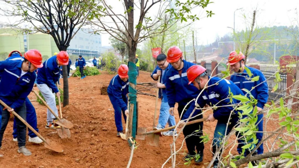 銅仁(上市主體)產(chǎn)業(yè)基地工會(huì)開展了植樹節(jié)相關(guān)活動(dòng),工會(huì)領(lǐng)導(dǎo)班子號(hào)召?gòu)V大員工參與到愛護(hù)園區(qū)環(huán)境的行動(dòng)中,來自原料廠區(qū)、材料廠區(qū)、環(huán)保廠區(qū)、職能部門的員工代表參加了植樹活動(dòng),為園區(qū)增添新綠。