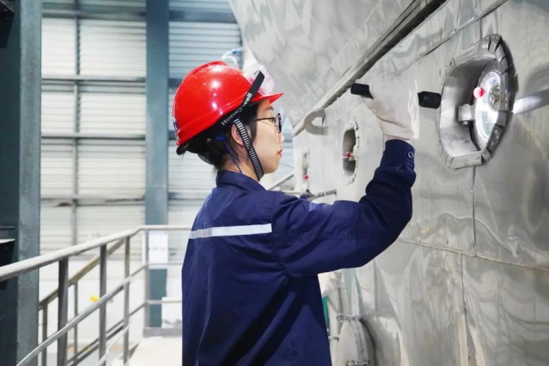 在日常工作中,莫海蘭還是習慣帶著筆記本記錄產線的各類數據和自己的分析,在一次日常開機調試中,廢水水質的異常波動引起了她的注意,她由此順藤摸瓜,通過計算與比對找到了一種更為合適的開機方式,在得到領導的認可后,這一建議得到應用推廣,進一步完善了銨鎂的產線工藝。