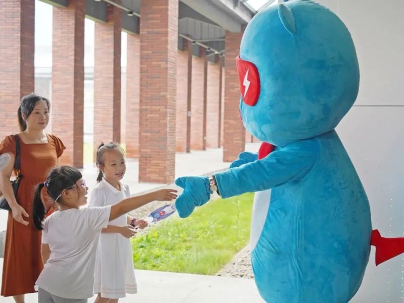 隨著中偉品牌IP“鋰電寶寶”一聲響亮的口令,中偉科技館的大門緩緩打開,新穎的開場方式一下子就吸引了小朋友們的目光,他們懷著強烈的好奇心,邁著整齊的步伐,進入科技館,沉浸式體驗關于新能源材料的一切。