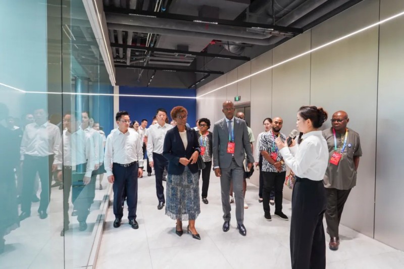 考察團一行先后參觀了中偉科技館、中偉全球研發中心等,詳細了解中偉發展歷程、科技創新以及全球產業布局等情況。在科技館,劉一重點向考察團介紹了中偉“資源開發-材料智造-全球循環”的新能源材料產業生態以及公司圍繞這一生態所作的的全球產業布局。代表團成員認真聆聽,對中偉的生態化、全球化發展表示由衷的贊賞,并不時就中偉在非洲產業布局和未來規劃進行問詢,探討深入合作的可能性。