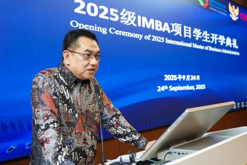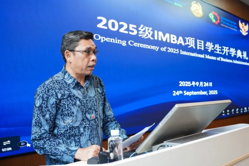 儀式上,湖南大學(xué)副校長(zhǎng)姜潮致開場(chǎng)詞,他對(duì)IMBA項(xiàng)目的順利啟動(dòng)表示祝賀,向印尼各部委及中偉股份的信任與支持表示感謝。姜潮表示,為保障項(xiàng)目高質(zhì)量實(shí)施,學(xué)校精心配置了強(qiáng)大的師資力量,打造全英文的授課環(huán)境、豐富的校企聯(lián)動(dòng),希望IMBA班學(xué)生們學(xué)有所思、學(xué)有所獲,在湖南大學(xué)學(xué)習(xí)成長(zhǎng),成為“一帶一路”中印尼溝通交流的橋梁。
