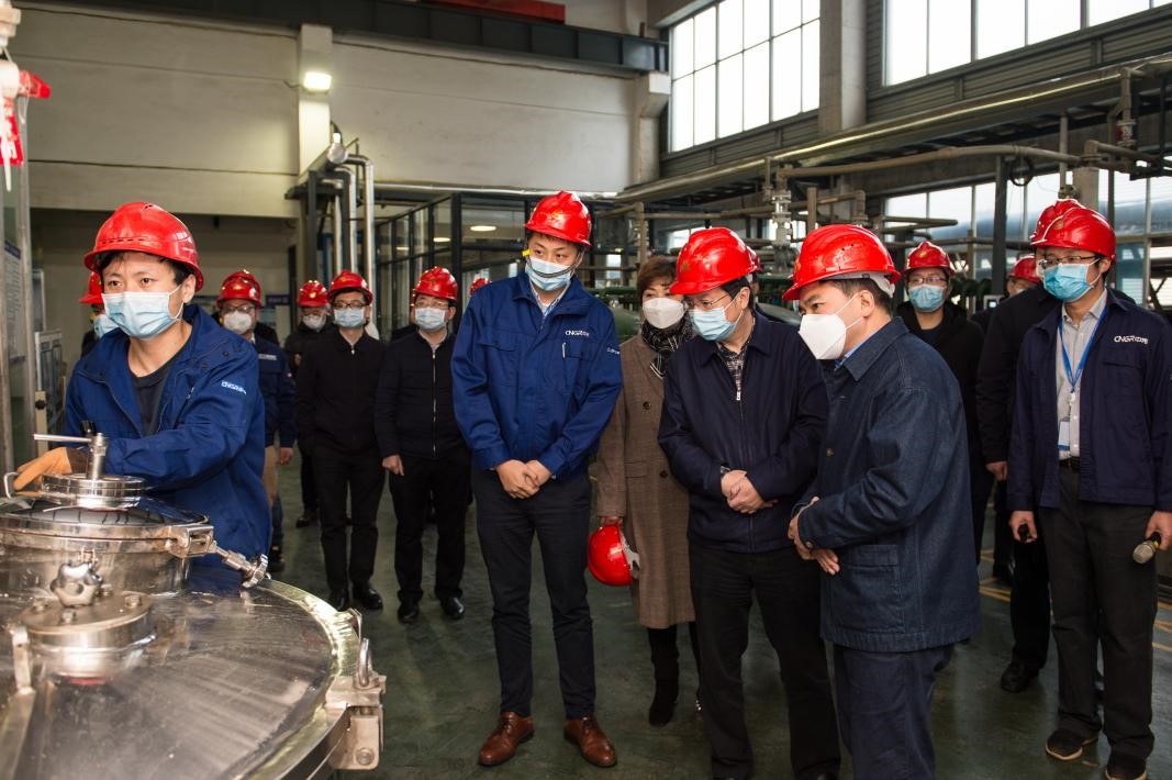 胡衡華一行先后參觀了園區(qū)辦公大樓、中試車間、三元二車間,詳細了解了公司發(fā)展規(guī)劃等相關(guān)內(nèi)容,仔細詢問了中偉在疫情期間的產(chǎn)能、經(jīng)營情況。對于中偉目前復工率接近100%,園區(qū)0感染、0減員、0停產(chǎn)的階段性成果,胡衡華表示了充分肯定。