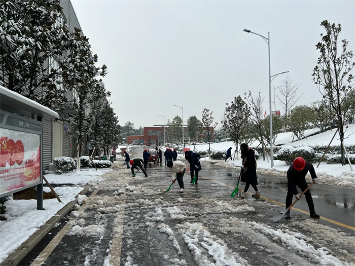 西部產(chǎn)業(yè)基地領(lǐng)導(dǎo)班子率先垂范,基地總經(jīng)理鄧光明,常務(wù)副總經(jīng)理張朝華以及公司各分管領(lǐng)導(dǎo)紛紛加入掃雪隊(duì)伍,充分發(fā)揮引領(lǐng)作用。志愿者們熱火朝天地參與到行動(dòng)中,一時(shí)間,掃雪隊(duì)伍成了銀裝素裹下產(chǎn)業(yè)基地的一道美麗風(fēng)景線。