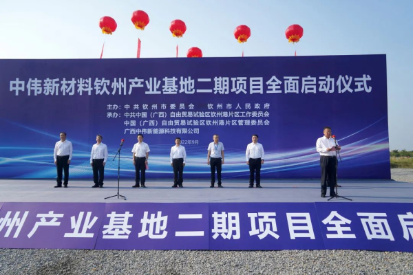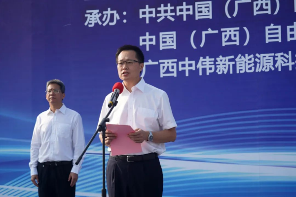 楊斌代表欽州市委、市人民政府向中偉欽州產業基地二期項目全面啟動表示熱烈祝賀。中偉欽州產業基地是廣西打造新能源新材料產業集群的核心項目,基地二期項目的全面啟動,將對廣西搶占新一輪產業發展新高地、打造千億級新能源材料產業集群,延伸發展新能源汽車、儲能、新基建等新興產業具有重要意義。